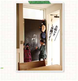 因此,有很多家庭会在玄关旁边的一部分墙壁做成黑板的创意,只要涂上黑板用的涂料就可以了,施工也很简单。这里不但可以成为了孩子们画画的空间,而且在玄关这个地方,备注外出时要携带的东西、给家人的留言等似乎也很有用处。