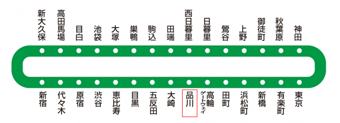 品川站是大终点站,有以下7条路线: