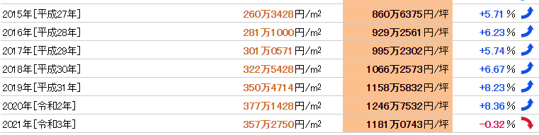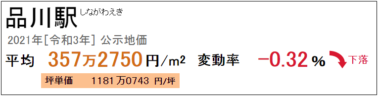 品川所在的港区是东京的富人区之一,品川站2021年公示地价为每平方米357.275万日元。近年来地价均稳步上升,因受新冠肺炎疫情的影响,今年略下降了0.32%。