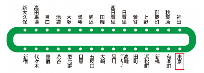 东北新干线、北海道新干线、山形新干线、秋田新干线、上越新干线、长野新干线、东海道线、中央线(快速)、总武线(快速)、横须贺线、京叶线、山手线、京滨东北线、成田特快、东海道新干线、东京地下铁、丸之内线。
