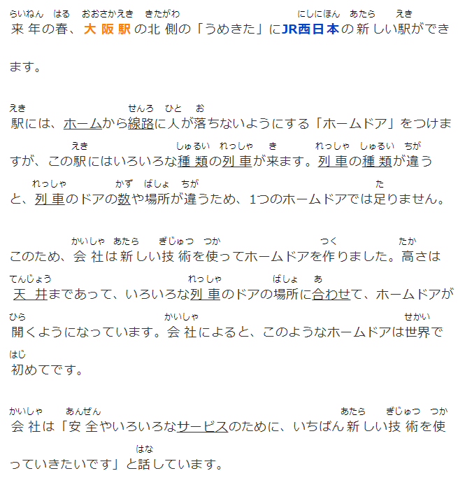 JR西日本イノベーション本部の小森一担当課長は「『うめきた』の新駅は未来に向けた実験場だと捉えている。フルスクリーンホームドアはいろいろな車両に対応できる最新の技術で、『うめきた』で培った技術を、安全面やほかのサービスにも展開していきたい」と話していました。