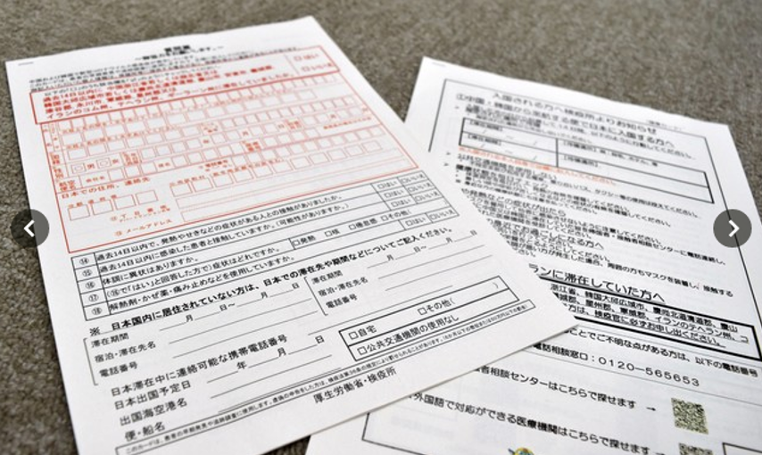 上午8点多,一班来自首尔的航班抵达了成田机场,随后机上8名旅客下了飞机。在检疫检查柜台,身着防护服、帽子、口罩、面罩等全副武装的检疫员要求每位乘客都要填写健康调查表,确认其停留地、行动方式等活动路径,并要求他们隔离14天,同时不使用公共交通工具。