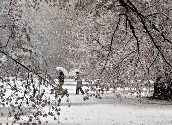 在3月29日清晨至午后,受低气压及强冷空气的影响,在东京都等关东地区的大范围内,观测到了积雪。