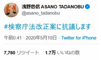 鉴于执政党在8日的众议院内阁委员会上强行开展实质性审议。自9日晚以后,一些演员、歌手等著名人士开始在推特上纷纷表示“#抗议《检察厅法》修正案”,推特上的转发量也在不断飙升,在11日晚8点多时已超过680万条。