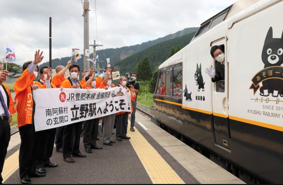 8月8日,熊本站(熊本市)举办了纪念通车的出发仪式。上午9点多,随着熊本站站长出口扩与熊本县的吉祥物“熊本熊”发出的信号,预约满座的观光列车“阿苏男孩!”缓缓驶出了站台。