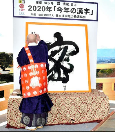 12月14日,日本汉字能力检定协会在京都市清水寺的舞台上公布了自全国征集而来的“今年的汉字”,代表2020年的汉字为“密”。