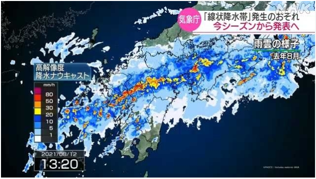 日本气象厅计划自今年起,即2022年开始,在大雨季节对活跃的积雨云连接成带状并形成大雨的“线状雨带”发布可能发生的雨带信息。