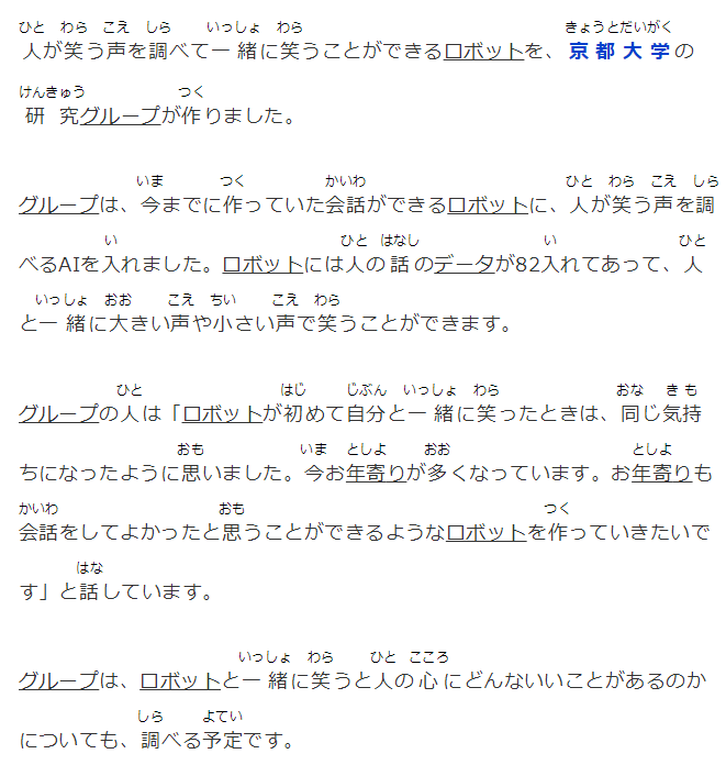 人が笑う声を調べて一緒に笑うことができるロボットを、京都大学の研究グループが作りました。