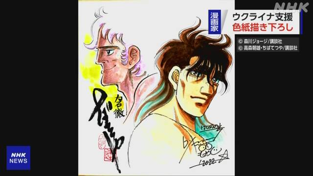 軍事侵攻を受けるウクライナの人たちなどを支援しようと「あしたのジョー」などの作品で知られるちばてつやさんを始めとする100人余りの漫画家たちが描き下ろした色紙のチャリティーオークションが始まりました。
