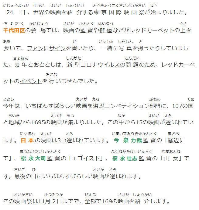 この映画祭は11月2日までで、全部で169の映画を紹介します。
