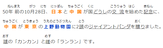 50年前の10月28日、日本と中国が国どうしの交流を始めた記念に、中国が東京の上野動物園に2頭のジャイアントパンダを贈りました。雄の「カンカン」と雌の「ランラン」です。