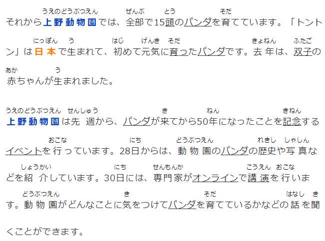 上野動物園は先週から、パンダが来てから50年になったことを記念するイベントを行っています。28日からは、動物園のパンダの歴史や写真などを紹介しています。30日には、専門家がオンラインで講演を行います。動物園がどんなことに気をつけてパンダを育てているかなどの話を聞くことができます。