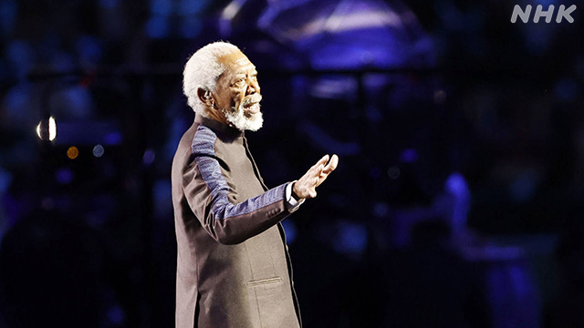 はじめに幸運と繁栄の印とされるジンベエザメの映像が流れたあと、俳優のモーガン・フリーマンさんが登場し「サッカーは世界中に広がり、美しいゲームへの愛は国と国を結びつける」などと呼びかけました。