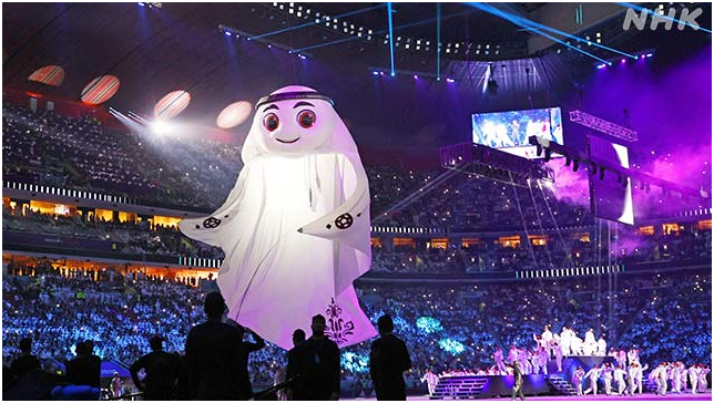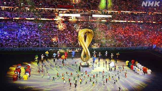 セレモニーは開催国カタールとエクアドルの開幕戦が行われるカタール北部のアルバイトスタジアムで午後5時40分から始まりました。