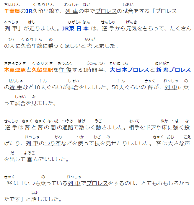 客は「いつも乗っている列車でプロレスをするのは、とてもおもしろかったです」と話しました。