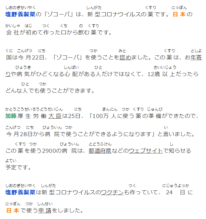 国は今月22日、「ゾコーバ」を使うことを認めました。この薬は、お年寄りや病気がひどくなる心配がある人だけではなくて、12歳以上だったらどんな人でも使うことができます。