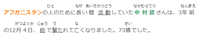 アフガニスタンの人のために長い間活動していた中村哲さんは、3年前の12月4日、銃で撃たれて亡くなりました。73歳でした。
