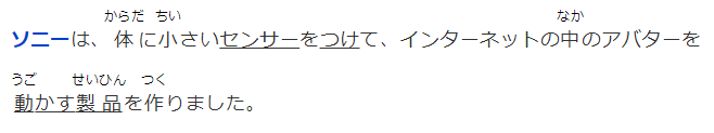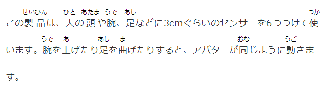 ソニーは、体に小さいセンサーをつけて、インターネットの中のアバターを動かす製品を作りました。