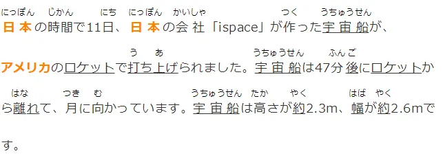 日本の時間で11日、日本の会社「ispace」が作った宇宙船が、アメリカのロケットで打ち上げられました。宇宙船は47分後にロケットから離れて、月に向かっています。宇宙船は高さが約2.3m、幅が約2.6mです。