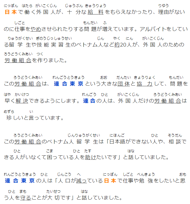 日本で働く外国人が、十分な給料をもらえなかったり、理由がないのに仕事をやめさせられたりする問題が増えています。アルバイトをしている留学生や技能実習生のベトナム人など約20人が、外国人のための労働組合を作りました。