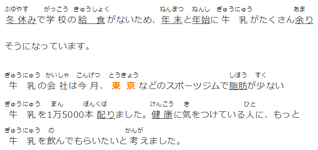 冬休みで学校の給食がないため、年末と年始に牛乳がたくさん余りそうになっています。