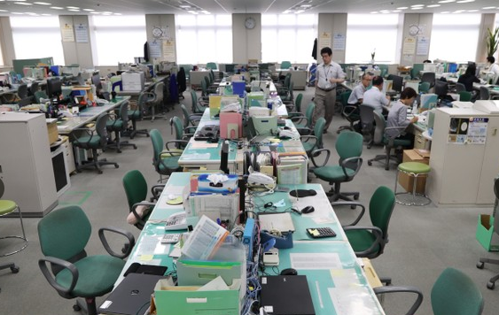 与此同时,位于东京都新宿区的东京都厅第一本厅大厦开始装饰起奥运会、残奥会的巨大会徽。在当天早上,平时约有130名职员工作的总务局人事部所在楼层,空座位十分醒目,办公空间显得空空荡荡。据了解,在当天开始的试验中,九成左右该部门的职员或避开通勤早高峰上班,或在自家SOHO办公。