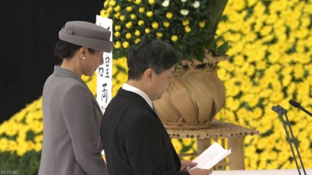追悼仪式上,全体参加者集体默哀1分钟后,天皇陛下发表了带有诚恳愿望的致辞,称“基于深刻反省的基础上,不让战争的惨祸再次重演。”自上皇陛下在2015年二战结束70周年的追悼仪式上一直使用的“深刻反省”这一词语所表达的态度,天皇陛下继承并沿用了上皇陛下致辞中的大半部分。