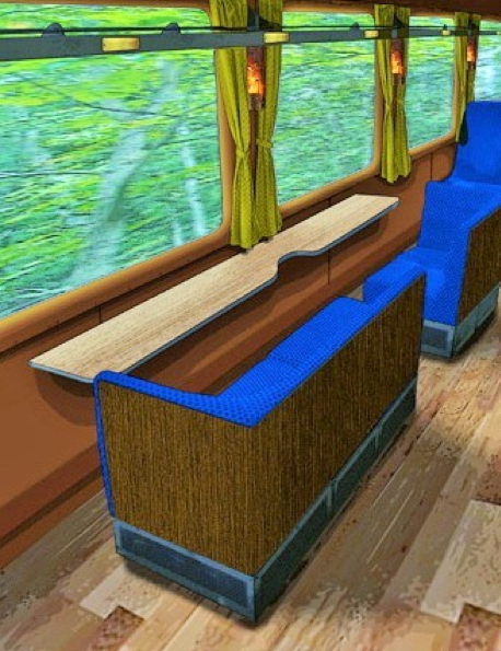 为了让乘客能够欣赏沿线窗外的景色及红叶,这列观光列车在座席的配置上下足了功夫。该车除作为周末运行的“急行MORIYOSHI”专用车辆之外,还将在活动及包车时加以灵活运用。