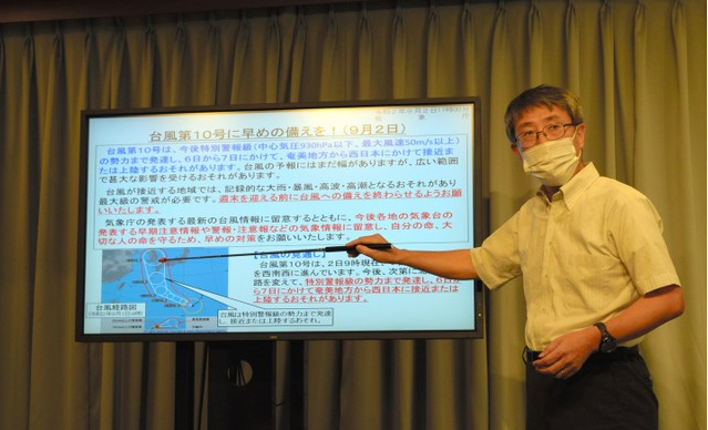 据日本气象厅9月2日发布的消息称,在小笠原近海发生的10号台风,可能将于6日至7日,从鹿儿岛的奄美地区至西日本,以史上最强级别的威力接近并登陆,根据预测可能会在大范围内产生巨大影响。