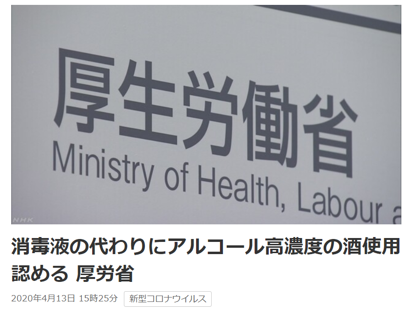 由于新冠肺炎疫情在日本的不断扩大,医院已经没有足够的酒精用于消毒。因此,日前日本厚生劳动省已通知医院,可以使用浓度为70%~83%的白酒用于消毒使用,消毒能力不会受到影响。