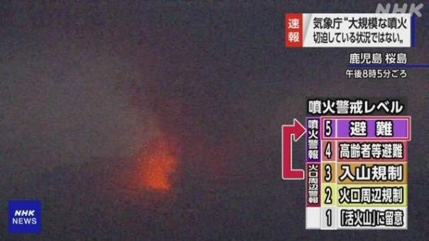 7月24日20时5分左右,日本鹿儿岛县樱岛的火山发生爆发性喷发,火山飞石飞至火山口方圆2.5公里地带。日本气象厅向樱岛发布了火山喷发警报后,并将火山喷发警戒级别提高到最高级5级,即“避难”级别。
