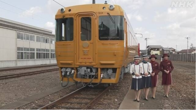2月21日,日本四国旅客铁道公司的新型“伊予滩物语”号观光列车在媒体人士面前亮相。据悉,该新型列车将于4月投入运营,在爱媛县内的多个路段上行驶。