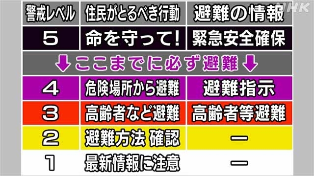 为了在发生暴雨等灾害时更好地指导民众转移避险,自5月20日起,日本各地方政府已经启用了最新的警报级别来发布避难信息。新级别将“避难劝告”与“避难指示”统一为“避难指示”,并在原有级别的基础上进行了大幅调整。