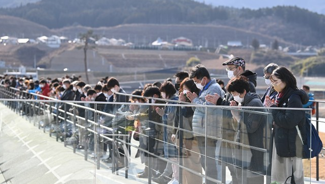 3月11日,东日本大地震已经过去了10年。在11日下午曾发生地震的2点46分,来自日本全国各地的人们集体向遇难者追悼祈祷。