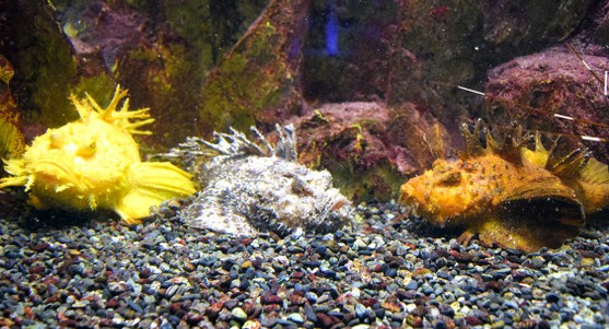 日本三重县志摩市的水族馆“志摩海洋公园”里,正在展示的三条日本鬼鲉依次为金色、银色、铜色排列,仿佛集齐了奥运会“金银铜”奖牌色,因此引起了来馆参观者的关注。